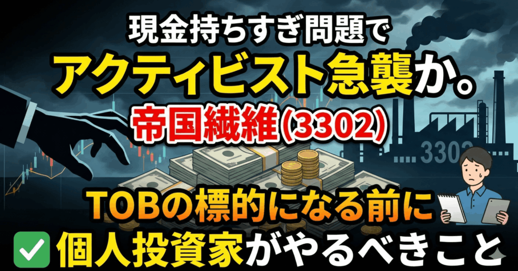 現金持ちすぎ問題でアクティビスト急襲か。帝国繊維(3302)がTOBの標的になる前に個人投資家がやるべきこと