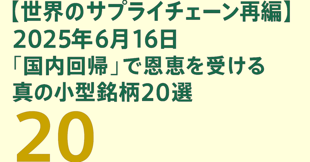 2025年6月16日:世界のサプライチェーン再編!「国内回帰」で恩恵を受ける真の小型銘柄20選