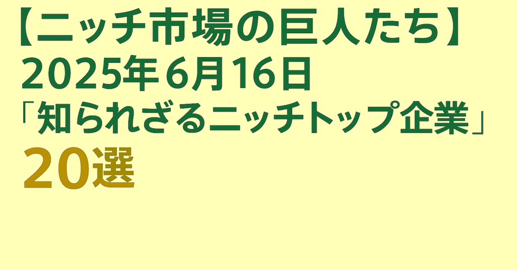 2025年6月16日 ニッチ市場の巨人たち:「知られざるニッチトップ企業」20選