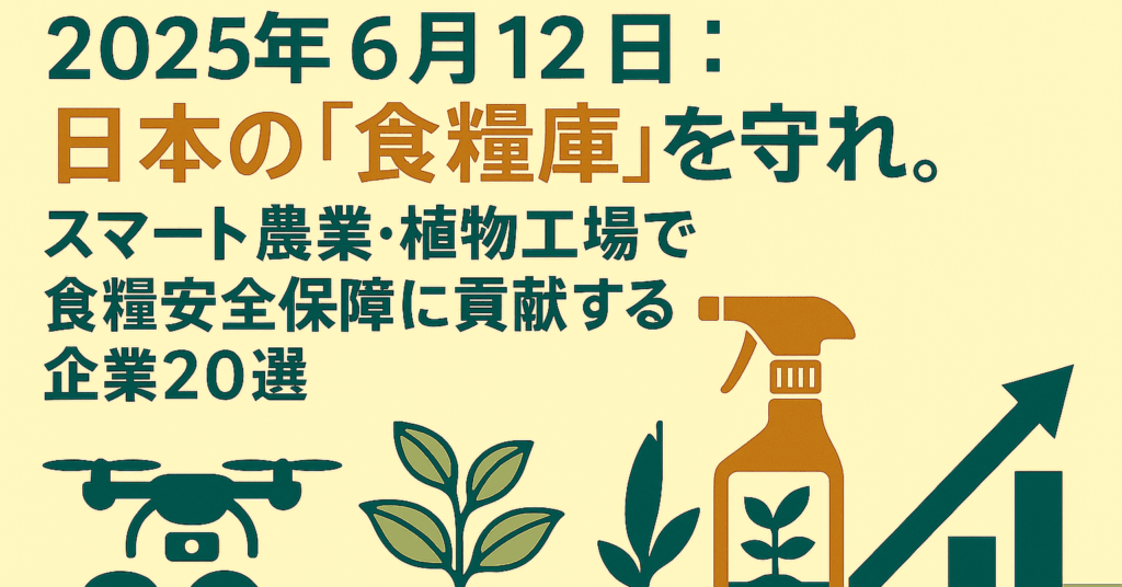 2025年6月12日 日本の「食糧庫」を守れ。スマート農業・植物工場で食糧安全保障に貢献する企業20選