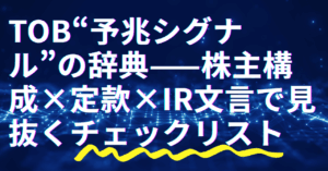 TOB“予兆シグナル”の辞典——株主構成×定款×IR文言で見抜くチェックリスト