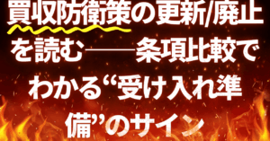 買収防衛策の更新/廃止を読む——条項比較でわかる“受け入れ準備”のサイン