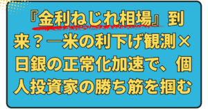 『金利ねじれ相場』到来?—米の利下げ観測×日銀の正常化加速で、個人投資家の勝ち筋を掴む