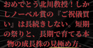 おめでとう北川教授!しかしノーベル賞の『ご祝儀買い』は長続きしない。短期の祭りと、長期で育てる本物の成長株の見極め方。
