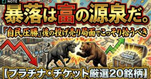 暴落は富の源泉だ。「自民圧勝」後の投げ売り局面でこっそり拾うべき【プラチナ・チケット厳選20銘柄】