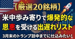 【厳選20銘柄】3月末のトランプ訪中までに仕込みたい!ツガミ(6101)など米中歩み寄りで爆発的な恩恵を受ける出遅れリスト