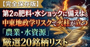 【完全保存版】第2の肥料・水ショックに備えよ。中東地政学リスクで火柱が立つ「農業・水資源」厳選20銘柄リスト
