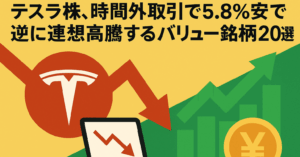 テスラ株、時間外取引で5.8%安で逆に連想高騰するバリュー銘柄20選