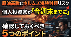 原油高騰とホルムズ海峡封鎖リスク ── 個人投資家が「今週末までに」確認しておくべき5つのポイント