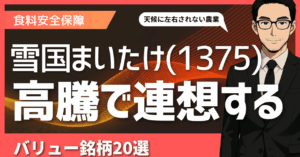 雪国まいたけ(1375)高騰で連想するバリュー銘柄20選
