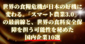 世界の食糧危機が日本の好機に変わる。「スマート農業3.0」の最前線と、世界の食料安全保障を担う可能性を秘めた国内企業10選