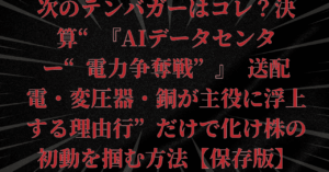 『AIデータセンター“電力争奪戦”』—送配電・変圧器・銅が主役に浮上する理由