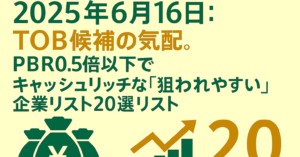 2025年6月16日:TOB候補の気配。PBR0.5倍以下でキャッシュリッチな「狙われやすい」企業リスト20選