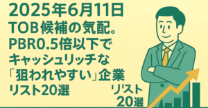 2025年6月11日:TOB候補の気配。PBR0.5倍以下でキャッシュリッチな「狙われやすい」企業リスト20選