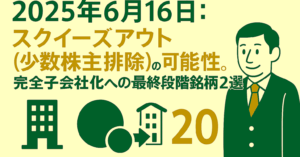 2025年6月16日:スクイーズアウト(少数株主排除)の可能性。完全子会社化への最終段階銘柄20選