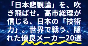 「日本悲観論」を、吹き飛ばせ。高市総理が信じる、日本の「技術力」。世界で戦う、隠れた優良メーカー20選