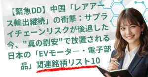 【緊急DD】中国「レアアース輸出継続」の衝撃:サプライチェーンリスクが後退した今、”真の割安”で放置される日本の「EVモーター・電子部品」関連銘柄リスト10