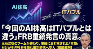 「今回のAI株高はITバブルとは違う」FRB重鎮発言の真意。玉石混交のブームが終わり、業績に裏打ちされた「本物」だけが生き残る残酷な選別時代へ突入【徹底解剖】