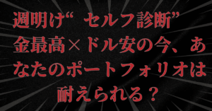 週明け“セルフ診断”——金最高×ドル安の今、あなたのポートフォリオは耐えられる?