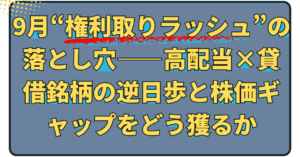 9月“権利取りラッシュ”の落とし穴——高配当×貸借銘柄の逆日歩と株価ギャップをどう獲るか